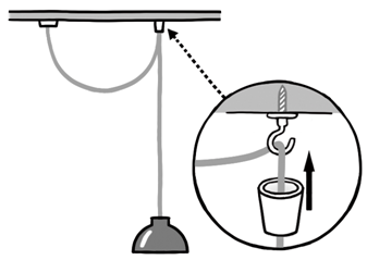 吊り下げ照明を取り付けたらフックに引っ掛け、下がらないように固定します。